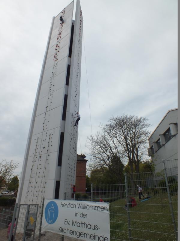 Am 06.05.2017 fand das Dankeschön-Klettern für unsere Teilnahme beim chrismon-Wettbewerb statt. Insgesamt waren ca. 100 Menschen da, nicht alle sind geklettert oder haben den Boulderraum genutzt, aber trotzdem einen schönen, sonnigen Nachmittag verlebt. Mittlerweile steht fest, dass wir beim chrismon-Wettbewerb leider nichts gewonnen haben. Vielen Dank trotzdem an alle, die für unseren Kletterturm abgestimmt haben. :-)